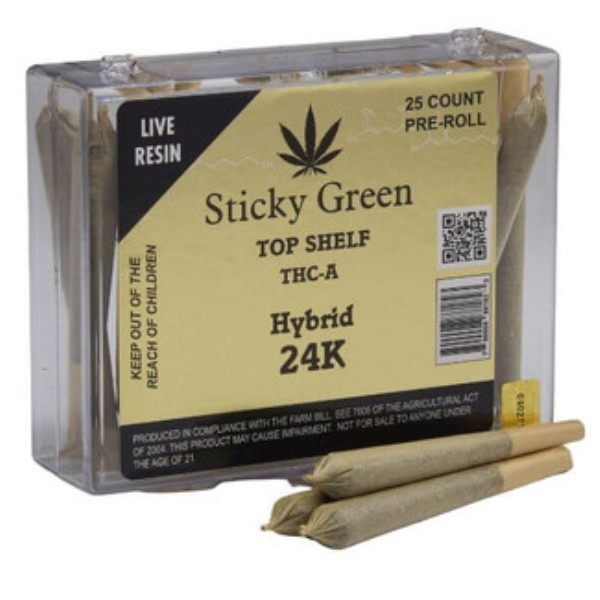 STICKY GREEN TOP SHELF PREROLLS W/TUBES 25CT - HYBRID